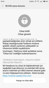 Resimde de görüldüğü gibi telefonuz da Hesap ve Cihaz ekleye basarak telefonunuzun bootlader kilidinin kaldırmaya başlayın.Ardında buradaki linkten Mi Unlock Tool u indirip açın.Telefonunuzu bilgisayara bağlayıp gereken adımları yaptığınızda işleminiz başarıyla tamamlanacaktır.