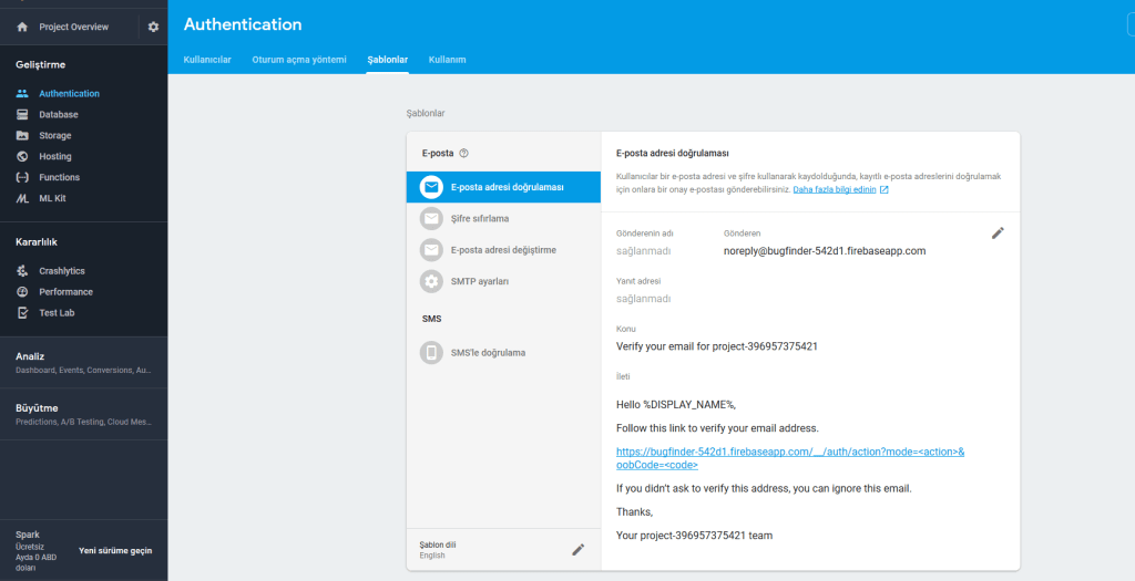 Eğer kullanıcının Emailine gelen doğrulama mesajları gibi mesajları değiştirmek istiyorsanız o bölümüde mesajlar kısmında bulabilirsiniz.Şablon Dili kısmındanda Türkçeyi seçerseniz mesajların Türkçe halleri karşınıza çıkacaktır.