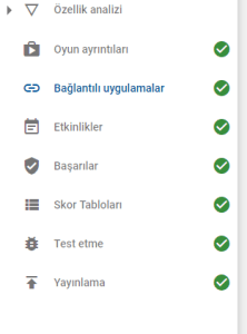 İlk olarak geliştirici hesabına giriş yapalım ve sol sekmeden oyun hizmetlerine geçiş yapalım.