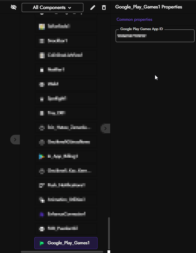 Gooogle Play Games komponenti eklendikten sonra parametre olarak Google Play Games App ID olarak belirtilen alana Oyun ID mizi yani